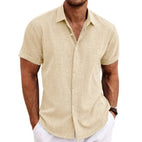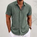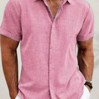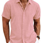 ZIMOWA WYPRZEDAŻOberon - Męska Koszula Lniana z Krótkim Rękawem