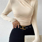 Der Isabelle – Sweter z Sznurkiem i Przeplatanym Kregiemłączy nowoczesny styl z przyjemnym ciepłem. Przeplatany krąg dodaje modowego elementu, a fałdy i sznurówki podkreślają sylwetkę i mogą być regulowane. Miękki materiał dzianinowy jest przyjemny w dotyku i sprawia, że sweter jest doskonałym towarzyszem zarówno w dzień, jak i w nocy. Bez względu na to, czy nosisz go z wysokim stanem spodni, dżinsami, czy spódnicami – Isabelle zapewnia prosty, elegancki wygląd. Uniwersalny element dla wszystkich, którzy cenią oryginalność.