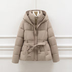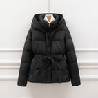 Jackalyn - Stylowa, pikowana kurtka z kapturem i paskiem dla kobiet