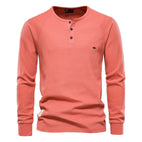 Koszula Jacob z długim rękawem łączy swobodny fason z komfortem. Materiał waflowy zapewnia ciepło i miękkość, a klasyczny okrągły kołnierz z guzikami dodaje współczesnego wyglądu. Można ją nosić z dżinsami, chinosami lub luźnymi spodniami, doskonała na odpoczynek, do pracy lub na spokojny weekend.