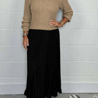 Ta dzianinowa sukienka charakteryzuje się miękką tkaniną i delikatnymi marszczeniami, które dodają jej kobiecego uroku. Luźny krój gwarantuje swobodę ruchów i komfort przez cały dzień. Idealna na jesienne dni, zarówno w domu, biurze, jak i podczas relaksu. Wszechstronny element garderoby, łączący wygodę z elegancją.