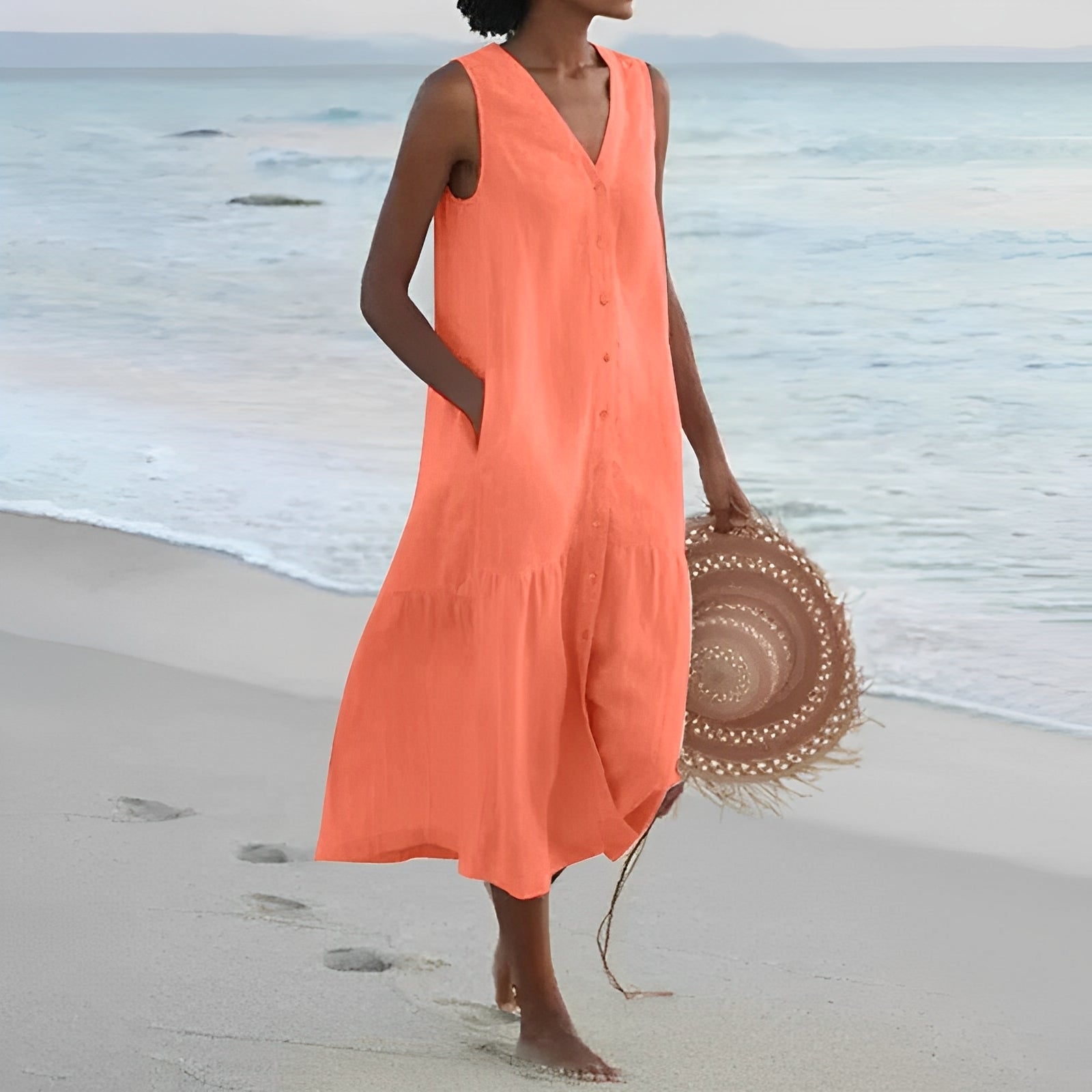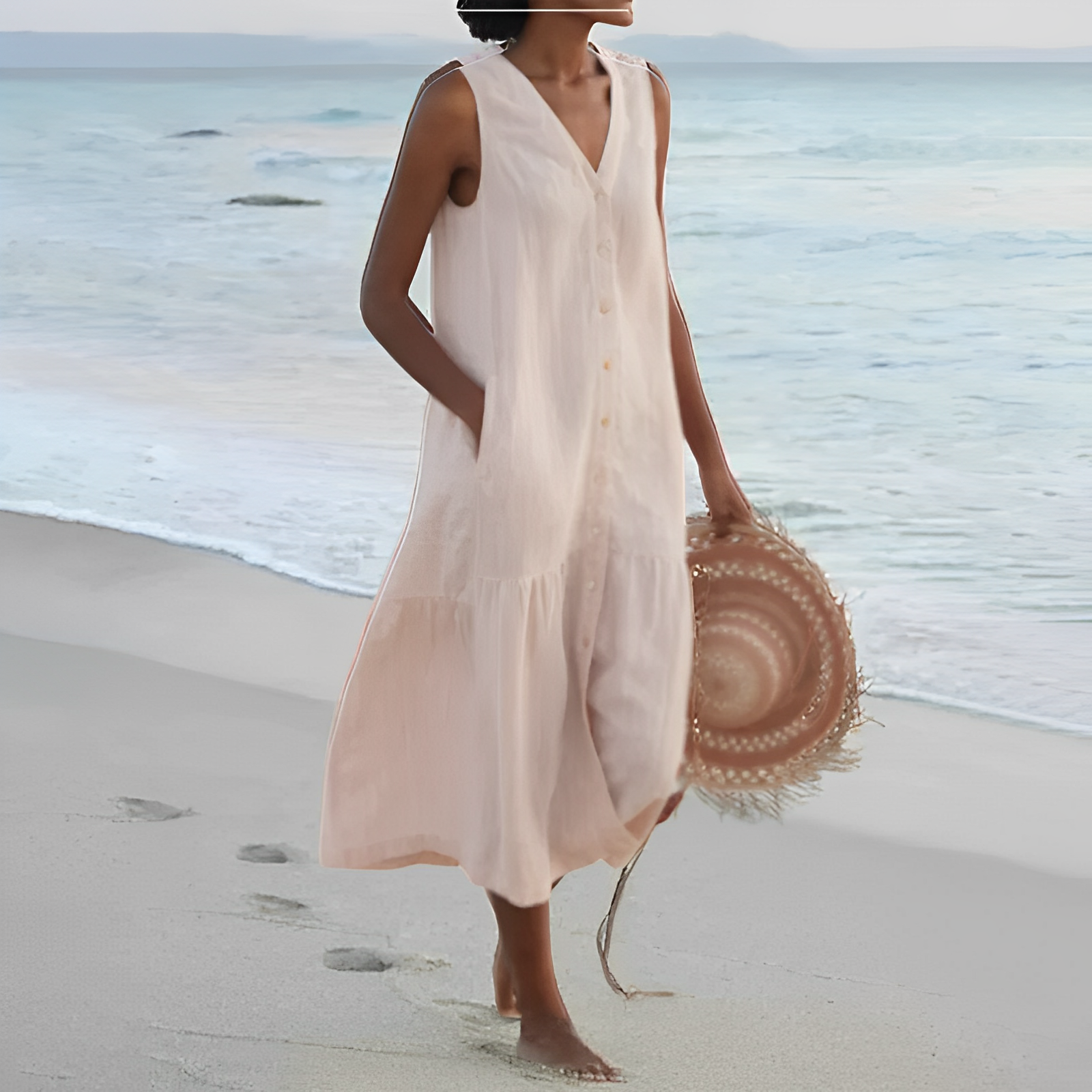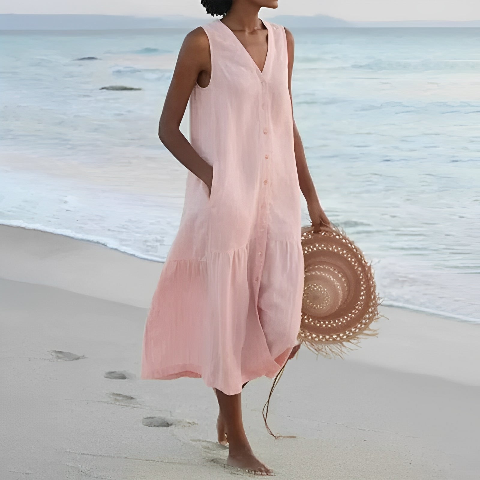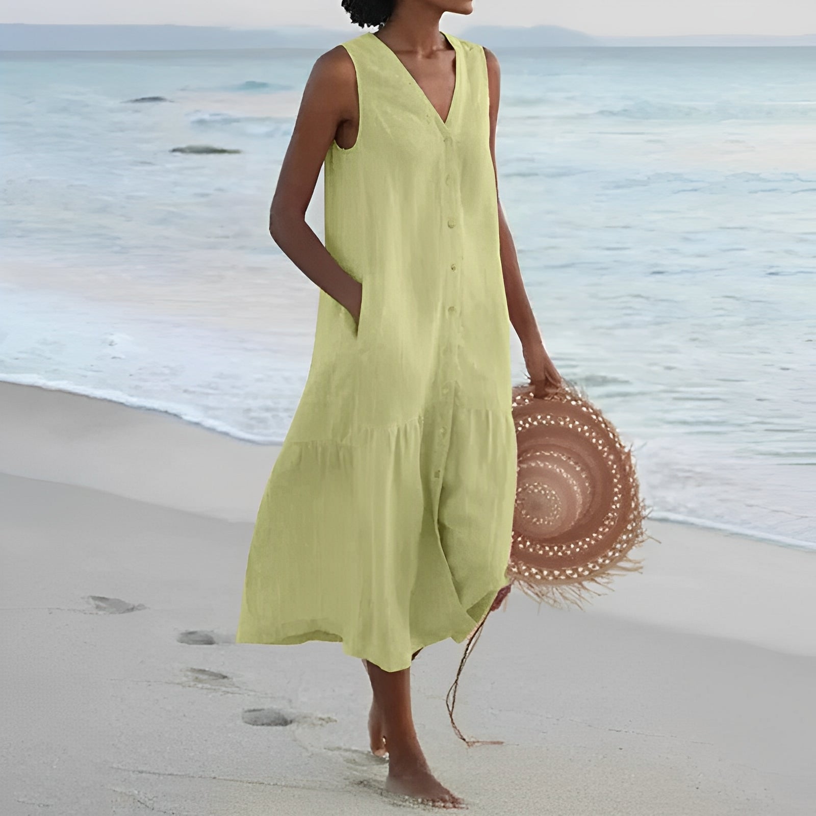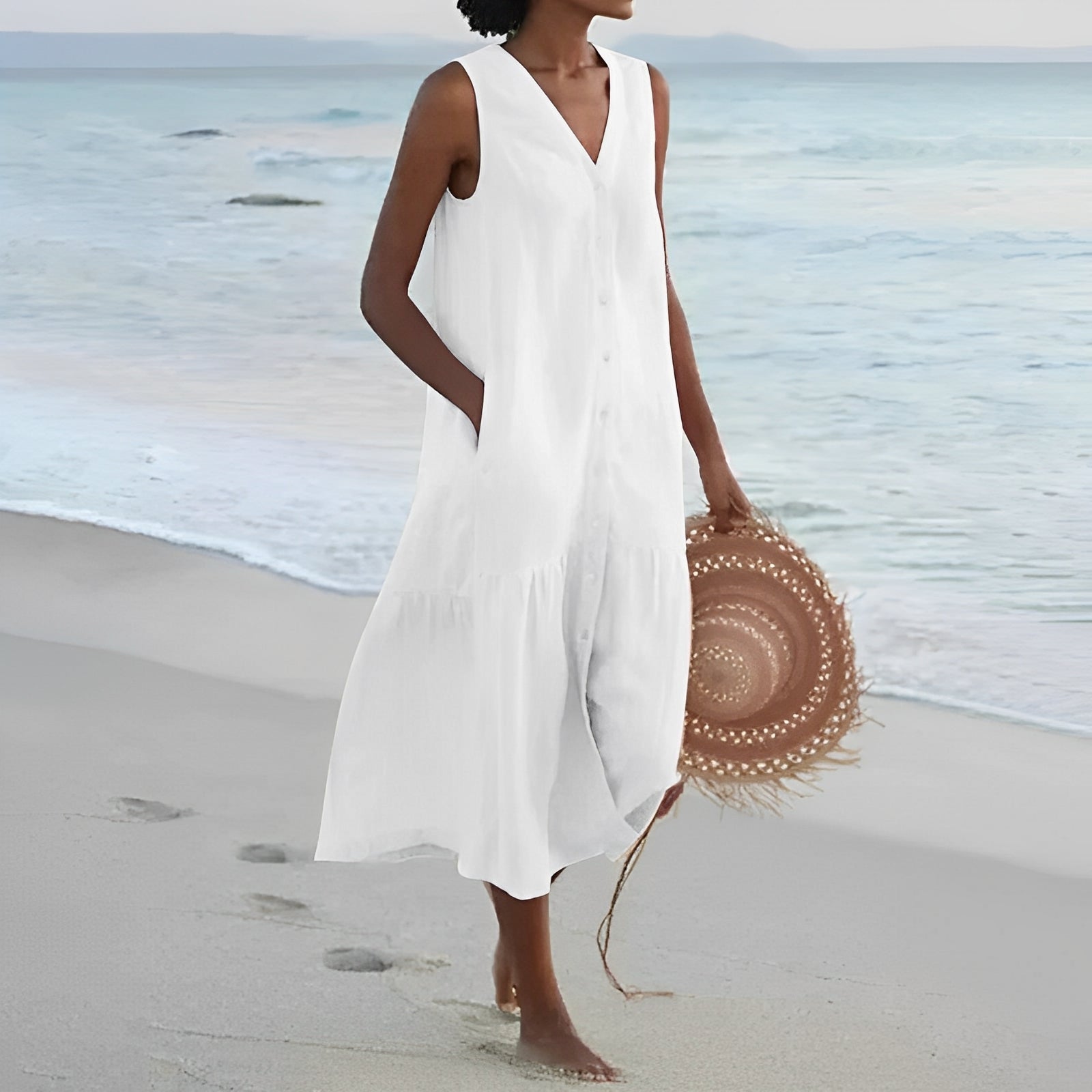 Prosto stylowa: Dzięki swojemu prostemu i eleganckiemu wyglądowi, ta sukienka jest idealna na relaksujące dni i wyjątkowe letnie doświadczenia.