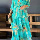 Jane - Kwiatowa, wielowarstwowa sukienka z dekoltem V dla kobiet