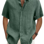 ZIMOWA WYPRZEDAŻOberon - Męska Koszula Lniana z Krótkim Rękawem