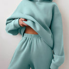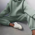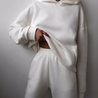 Zestaw Jasmine to bluza z kapturem o luźnym kroju i dopasowane spodnie dresowe, które oferują wygodę i swobodę poruszania się. Miękkie materiały zapewniają komfort noszenia, a nowoczesny styl sprawia, że jest to wszechstronny strój na czas wolny. Idealny do pracy w domu, spacerów lub wypoczynku na zewnątrz.