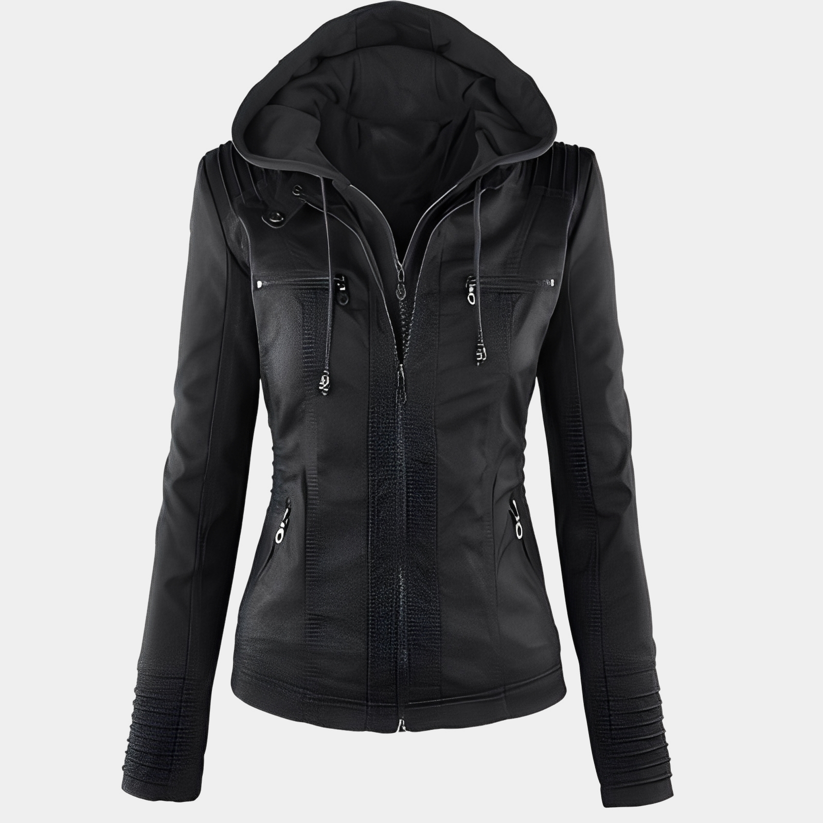 Jaylene - Stylowa wodoodporna kurtka skórzana z kapturem dla kobiet