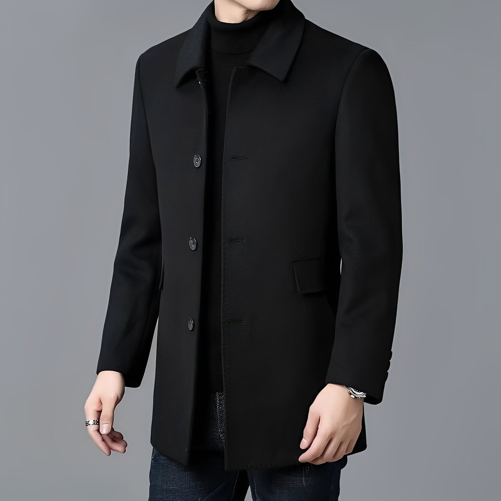 Jerry - Męski, elegancki płaszcz wełniany jednorzędowy