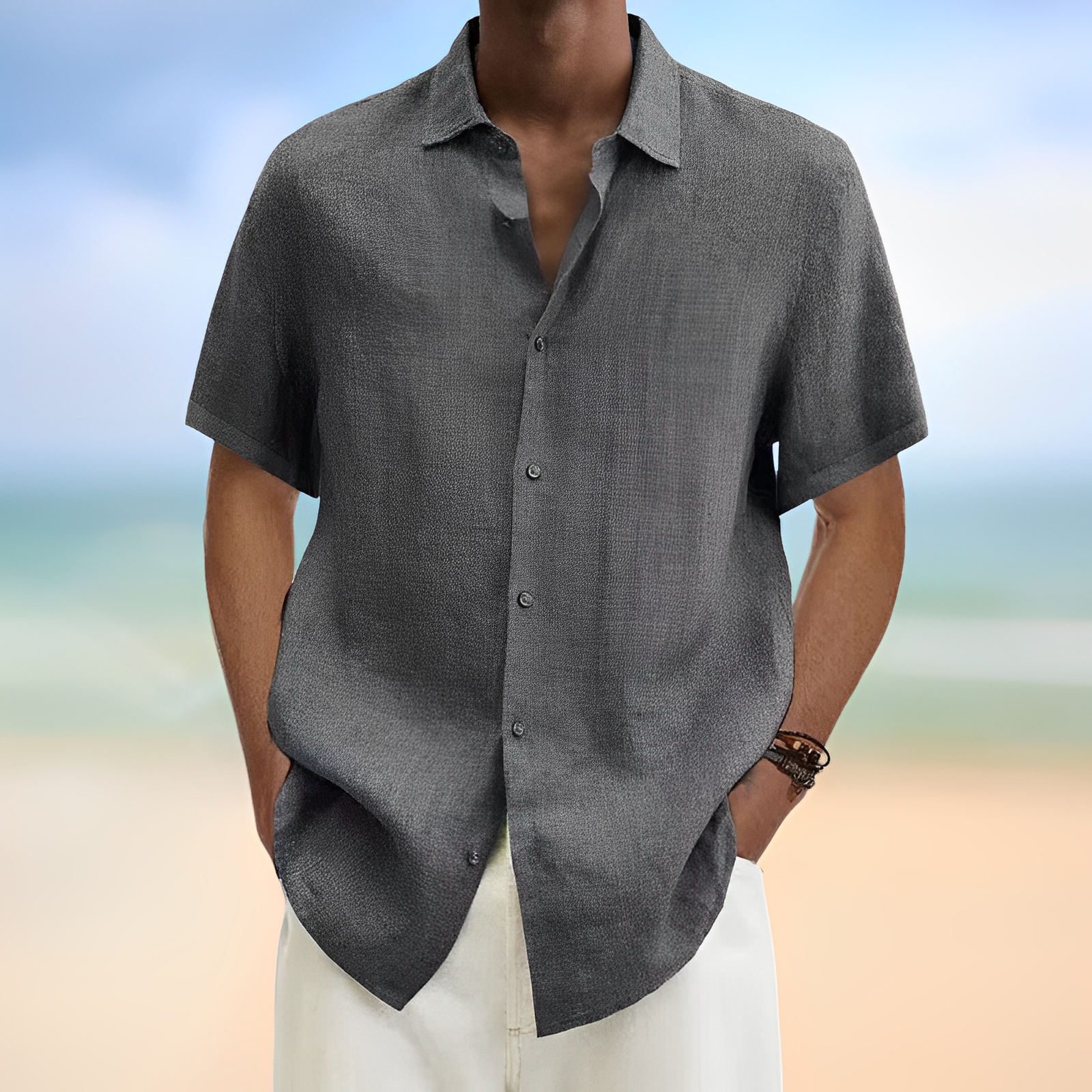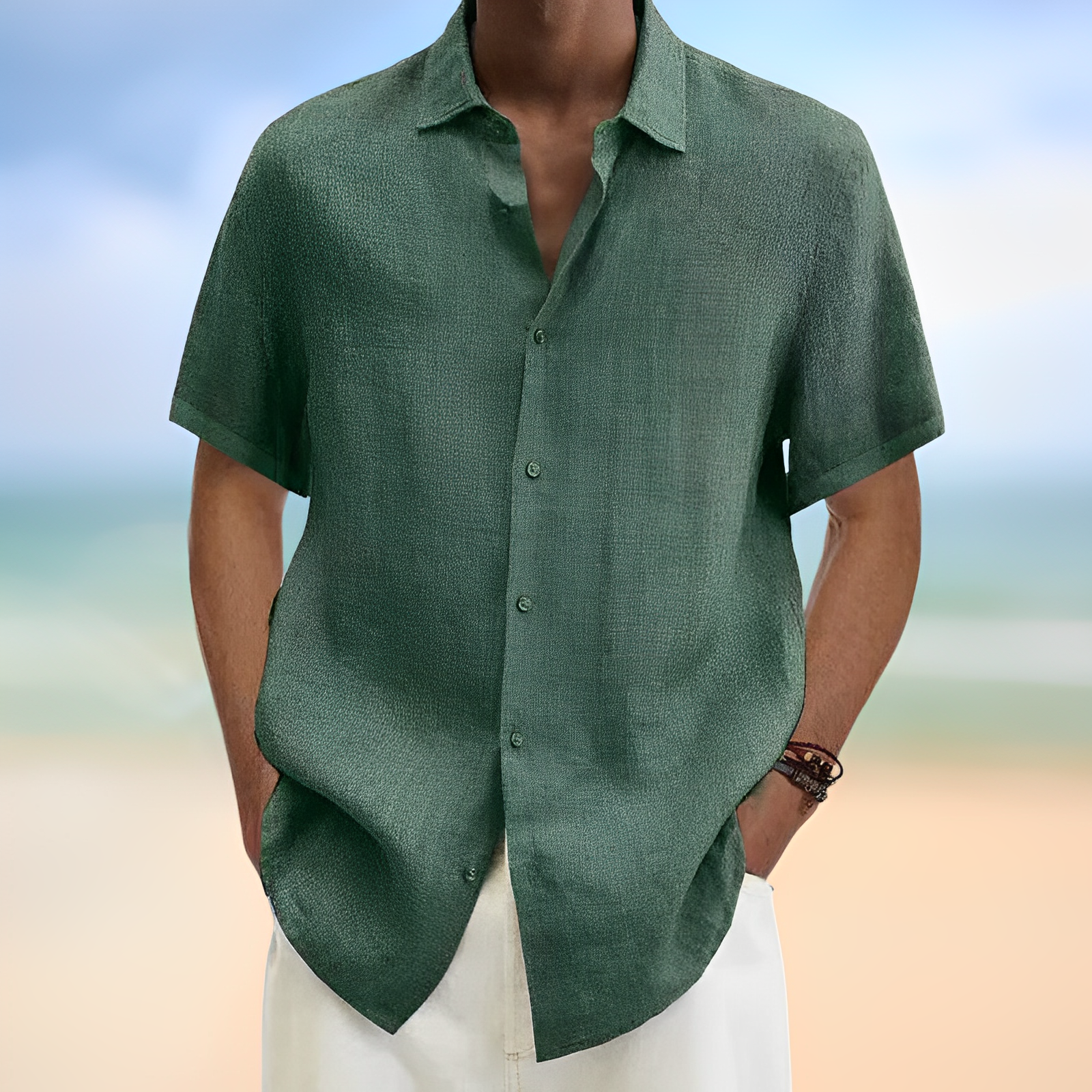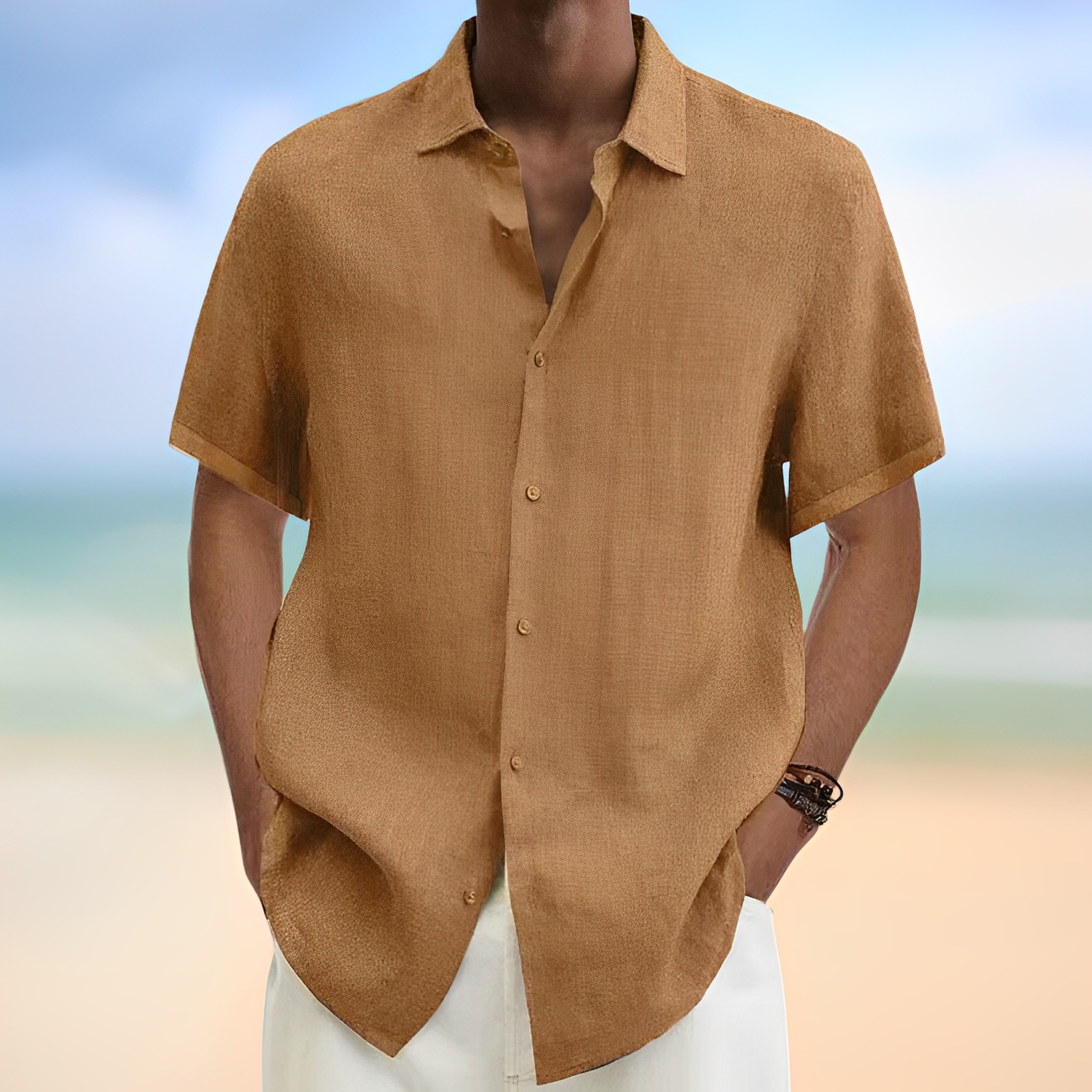 Oberon - Męska Koszula Lniana z Krótkim Rękawem