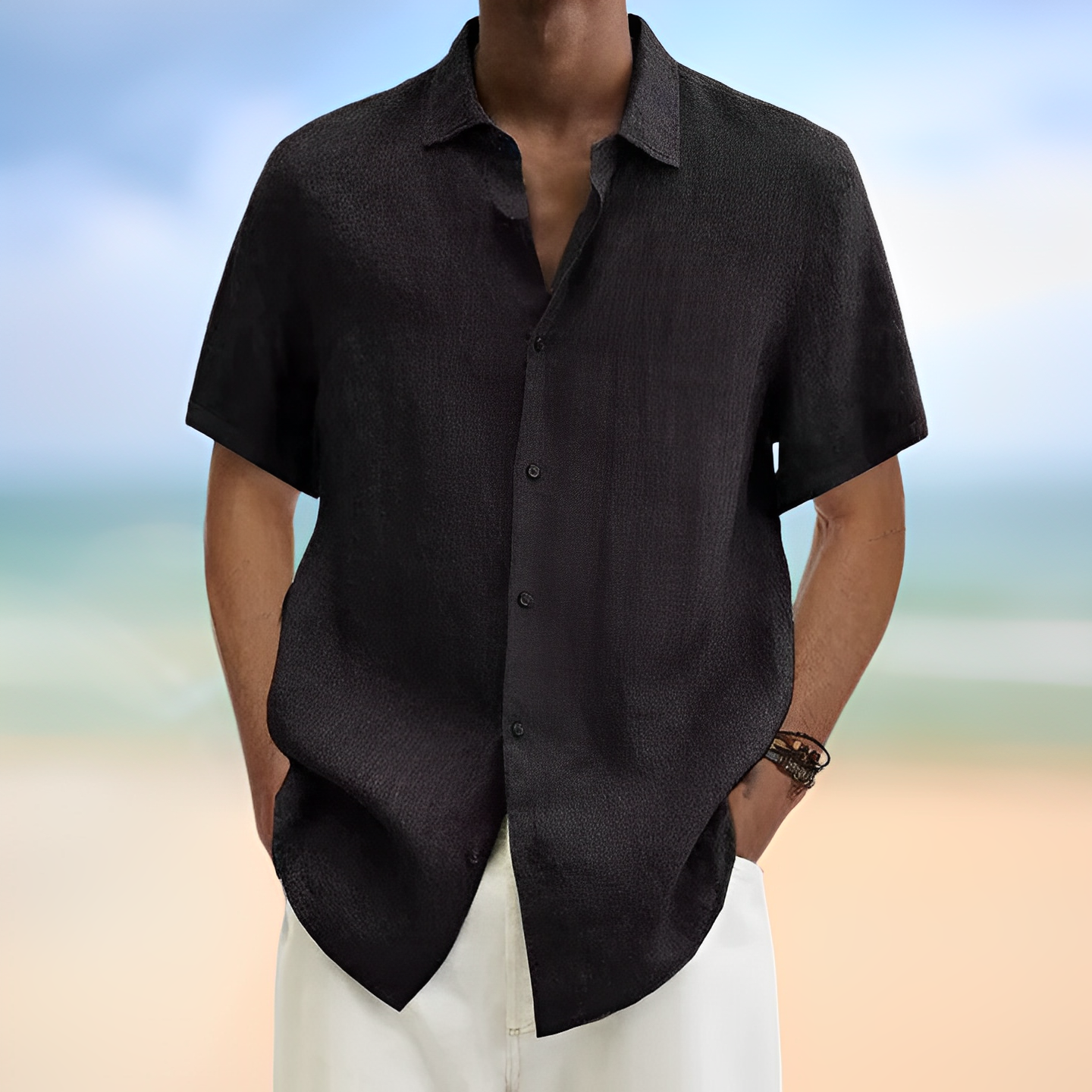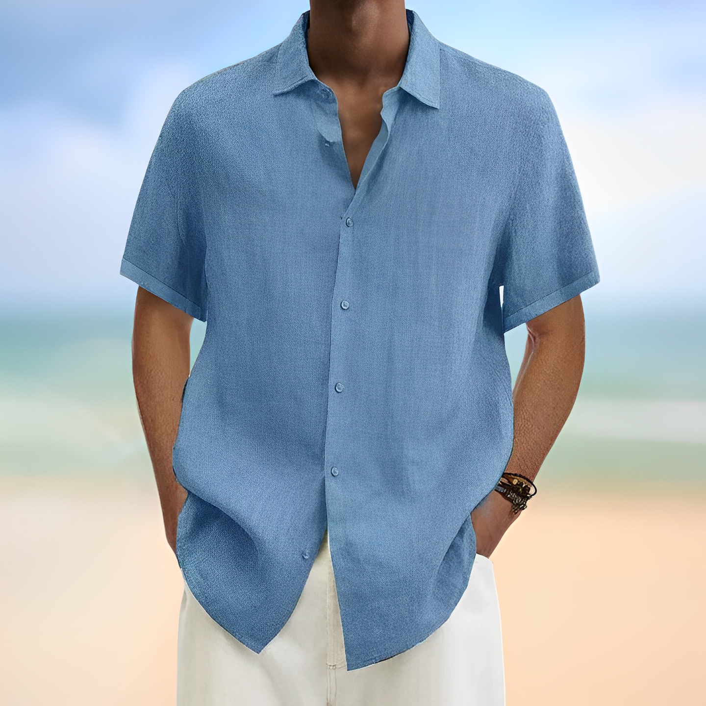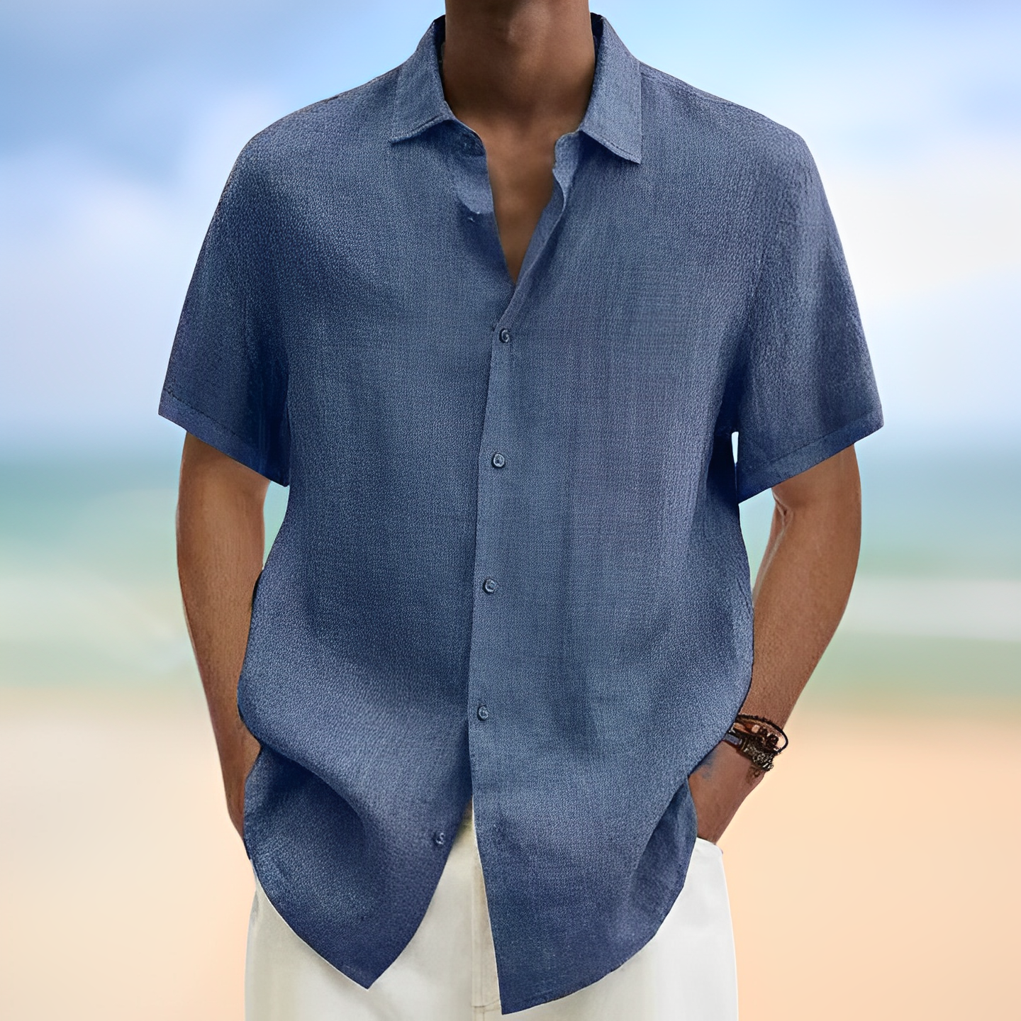 Oberon - Męska Koszula Lniana z Krótkim Rękawem