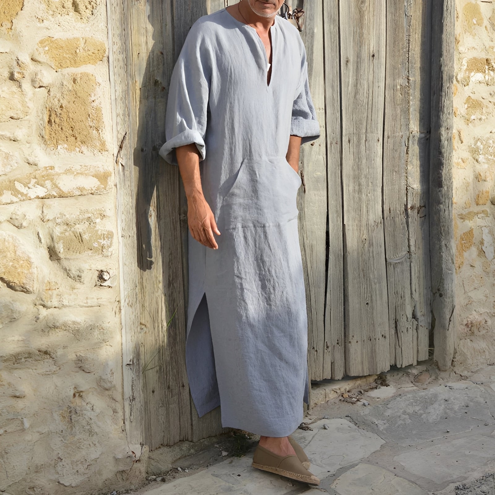 Josiah - Prosta długa sukienka koszulowa z rozcięciem dla mężczyzn