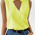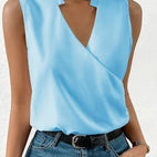 Bluzka „Juna” oferuje subtelną prostotę połączoną z letnią lekkością. Jej gustowny dekolt w szpic oraz brak rękawów czynią ją świetnym wyborem na różnorodne wydarzenia – od biura, przez miasto, po kolację na świeżym powietrzu.