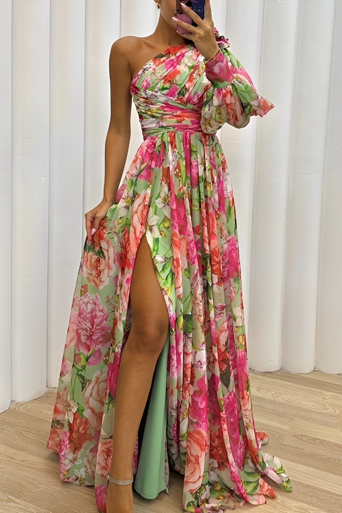 Katherine - Kwiatowa, lekka sukienka na ramię dla kobiet