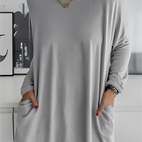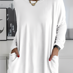 Krystle - Kobieca swobodna bluzka z długim rękawem i kieszeniami