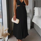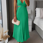 Laura - Stylowa, plisowana, sukienka midi bez pleców dla kobiet