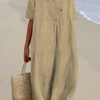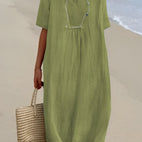 Leilani - Elegancka lniana sukienka z dekoltem V dla kobiet