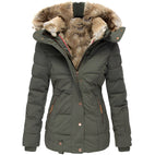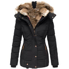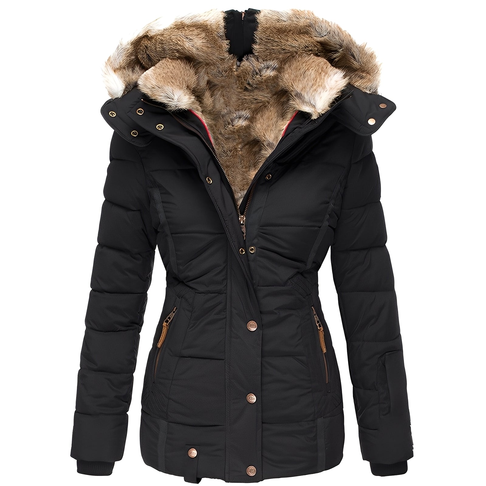 - Elegancki futrzany kaptur — Dodaje elegancji i dodatkowo chroni przed zimnym wiatrem i śniegiem.