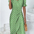 Uszyta z lekkiego i przewiewnego materiału, ta sukienka zapewnia korzystną sylwetkę, która układa się swobodnie, co czyni ją doskonałym wyborem na pikniki, wizyty na plaży lub przyjęcia w ogrodzie. Z intensywnymi kolorami i ciekawymi wzorami będziesz emanować ciepłem i stylem, gdziekolwiek się znajdziesz.