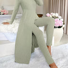 Ten zestaw z prążkowanego materiału łączy komfort z nowoczesnym stylem w jednym ubraniu. Miękki materiał jest przyjazny dla skóry i zapewnia maksymalny komfort noszenia. Składa się z topu i dopasowanych spodni, które dzięki elastycznemu krojowi zapewniają swobodę ruchów. Idealny na leniwe dni w domu, spacery czy rekreacyjne zajęcia – zestaw jest wszechstronny i aktualny. Dzięki prostemu, eleganckiemu designowi łatwo go połączyć z innymi elementami garderoby.