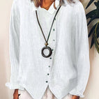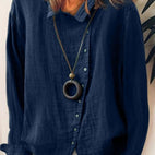 Nasza długa koszula lniana na co dzień dla kobiet jest stworzona z myślą o wygodzie i wszechstronności, kluczowy element Twojej szafy. Uszyta z lekkiej mieszanki, zapewnia luźny krój, który dobrze układa się na ciele, świetna do warstwowego wyglądu lub solo. Sparuj ją z legginsami lub dżinsami dla eleganckiego i swobodnego stylu, doskonałego na każdą nieformalną okazję.