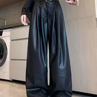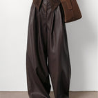 Lora - Klasyczne skórzane spodnie damskie z wysokim stanem