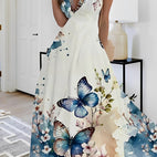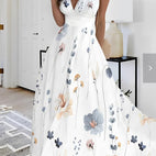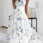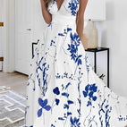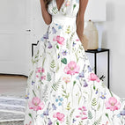 Lucie - Stylowa suknia maxi z dekoltem V i kwiatowym wzorem dla kobiet