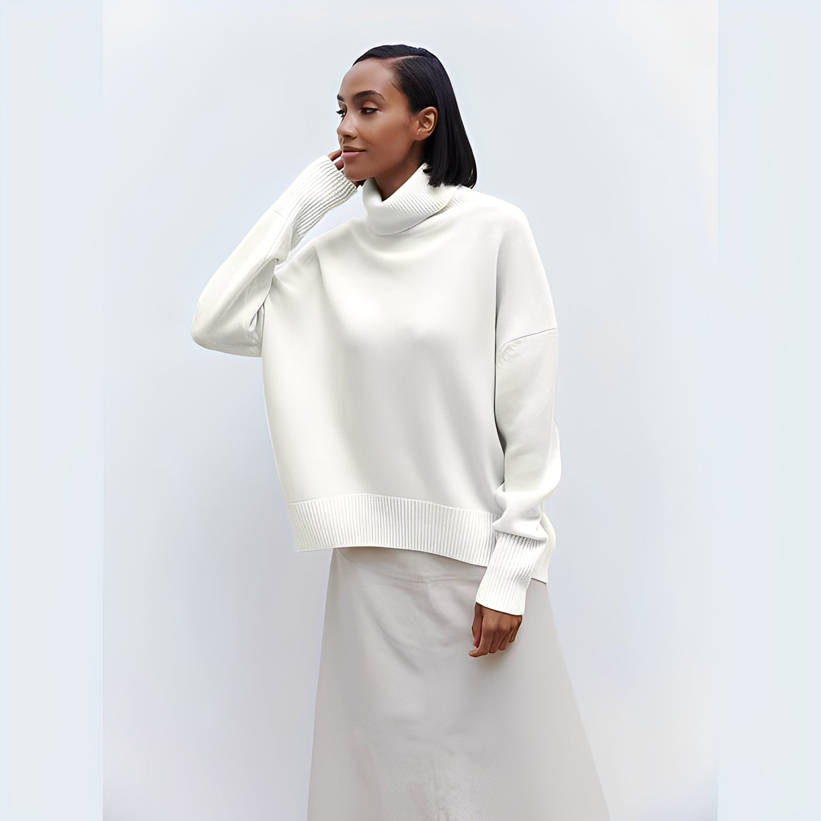 Zaktualizuj swoją zimową garderobę o ten ciepły, elegancki i wszechstronny oversize'owy sweter z golfem dla kobiet.