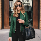 Wyraź swój styl i pewność siebie, wybierając tę modną i uniwersalną damską kurtkę motocyklową z zamkiem.