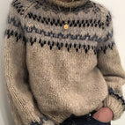 Sweter Macey charakteryzuje się grubym wzorem Fair-Isle, który łączy klasyczny styl z wygodą nowoczesności. Miękka i gruba tkanina zapewnia przyjemne ciepło, co sprawia, że jest idealny na chłodniejsze dni. Luźny krój daje swobodę ruchów, a jego tradycyjny design jest wszechstronny – idealny do noszenia na co dzień lub na leniwe dni w domu.
