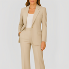 Odkryj wyrafinowaną elegancję naszego zestawu garniturowego dla kobiet Maeva, składającego się z długiego blezera i dopasowanych spodni — idealne połączenie klasy i nowoczesnego designu. Ten zestaw oferuje korzystną sylwetkę dzięki swojej strukturalnej formie, która podkreśla kształty, jednocześnie pozostając wystarczająco wygodnym do noszenia przez cały dzień. Idealny na spotkania biznesowe, formalne wydarzenia lub eleganckie i swobodne okazje, dodaje wyrafinowania i wszechstronności do Twojej garderoby. Jego minimalistyczny design i czyste linie sprawiają, że łatwo go połączyć z obcasami lub płaskimi butami, dodając elegancji każdej stylizacji. Niezależnie od tego, czy idziesz do biura, czy na wieczorne wyjście, ten zestaw gwarantuje spokojny i stylowy wygląd.