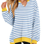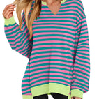 Maggie - Swobodny sweter w paski z dekoltem V dla kobiet