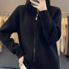 Kardigan Margaret z wełny damskiej z zamkiem zapewnia ciepło, komfort i wszechstronny styl. Zrobiony z miękkiej, wysokiej jakości wełny, zapewnia ciepło w zimowe dni, a jednocześnie jest przewiewny. Pełny zamek umożliwia łatwe dopasowanie do różnych stylów, od codziennych po bardziej szykowne. Jego elegancki krój i styl sprawiają, że jest niezbędnym dodatkiem do garderoby przez cały rok. Doskonały do pracy, na weekendowe wyjścia czy do odpoczynku w domu, ten kardigan łączy użyteczność z klasycznym wyglądem.