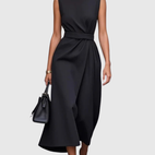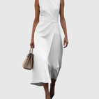 Sukienka midi Marguerite ucieleśnia klasyczny i wyrafinowany styl, idealny na każdą okazję. Jej prosty okrągły dekolt i bezrękawnikowa forma oferują elegancką i zrównoważoną sylwetkę. Delikatne fałdy w talii strukturyzują sukienkę, jednocześnie wprowadzając miękkość i płynność, podczas gdy długość midi podkreśla naturalny ruch ciała. Wykonana z lekkiego i oddychającego materiału, zapewnia trwały komfort od rana do wieczora. Niezbędny element dla stylu chic i bez wysiłku.