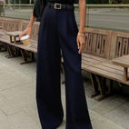 Te Marlene – Szerokie Spodnie Materiałowe Bez Paska zachwycają swoim luźnym krojem i eleganckim stylem. Wysokiej jakości, lekkie tkaniny gwarantują swobodę ruchów i przyjemne doznania noszenia przez cały dzień. Dzięki prostemu stylowi, spodnie można łączyć na wiele sposobów – zarówno z bluzką, topem, jak i swetrem. Idealne do biura, na co dzień lub na specjalne okazje. Spodnie, które naturalnie łączą komfort z klasą.