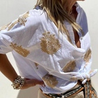 Meghan - Elegancka haftowana bluzka z guzikami