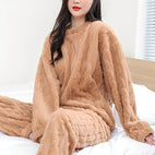 Melyssa to zimowy komplet piżamowy składający się z dwóch części, wykonany z grubego, miękkiego polarowego materiału, stworzony specjalnie na zimne dni. Luźny fason zapewnia maksymalną swobodę i komfort noszenia. W skład zestawu wchodzi sweter z długimi rękawami oraz spodnie w jednolitym kolorze – idealne do odpoczynku na kanapie czy na przytulne wieczory. Materiał oddycha, zachowując ciepło bez przegrzewania. Melyssa łączy modny wygląd z praktycznym komfortem.