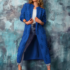 Ten dłuższy kardigan oferuje miękkie ciepło i nowoczesny, pogodny wygląd dzięki ozdobnym pomponom. Przyjemna w dotyku tkanina zapewnia wygodę, a luźny krój pozwala na swobodę ruchu. Idealny na co dzień lub do relaksu w domu. Modny wybór łączący wygodę ze stylem.