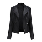 Narelle - Modna, wąska, krótka damska kurtka skórzana