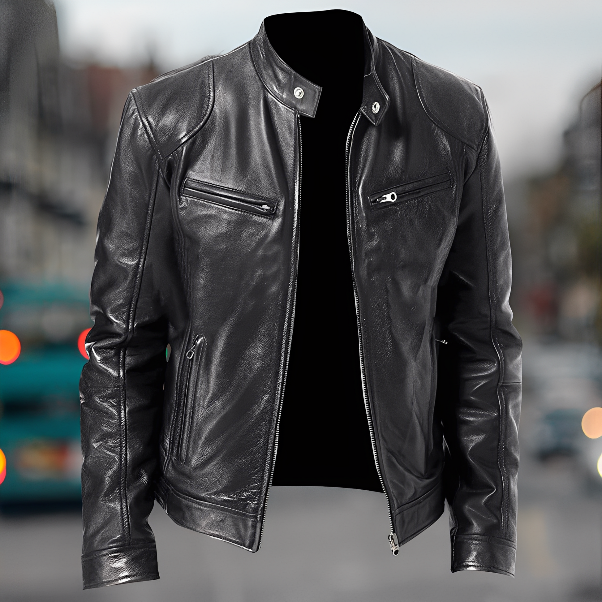 Brandon - Modna męska kurtka skórzana z licznymi kieszeniami