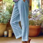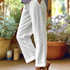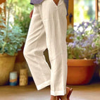 Oona - Letnie lniane spodnie dla kobiet: lekkie i przewiewne na słoneczną pogodę.