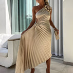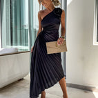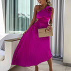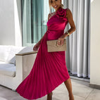 Rachael - Stylowa plisowana sukienka z kwiatowymi elementami na ramionach dla kobiet