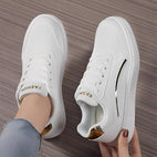 Buty Rexanne prezentują współczesny wygląd z eleganckimi złotymi i srebrnymi detalami. Stworzone z wysokiej jakości PU-skóry nie tylko wyglądają dobrze, ale także zapewniają wygodę przez cały dzień. Wytrzymała podeszwa daje stabilność, a klasyczna biel daje wiele możliwości stylizacji – idealne na wypoczynek, spacery po mieście lub codzienne noszenie.