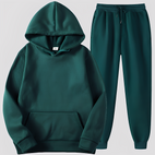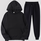 Ten sportowy zestaw składa się z dwóch części - uszyty z miękkiej mieszanki materiałów, zapewnia swobodę ruchu i wysoki komfort noszenia. W skład zestawu wchodzi bluza z kapturem i spodnie dresowe, tworząc spójny wygląd. Idealny zarówno na treningi, jak i na leniwe dni w domu, elastyczny materiał gwarantuje przyjemne noszenie. Praktyczne detale jak ściągacze i regulowany kaptur uzupełniają funkcjonalny design.