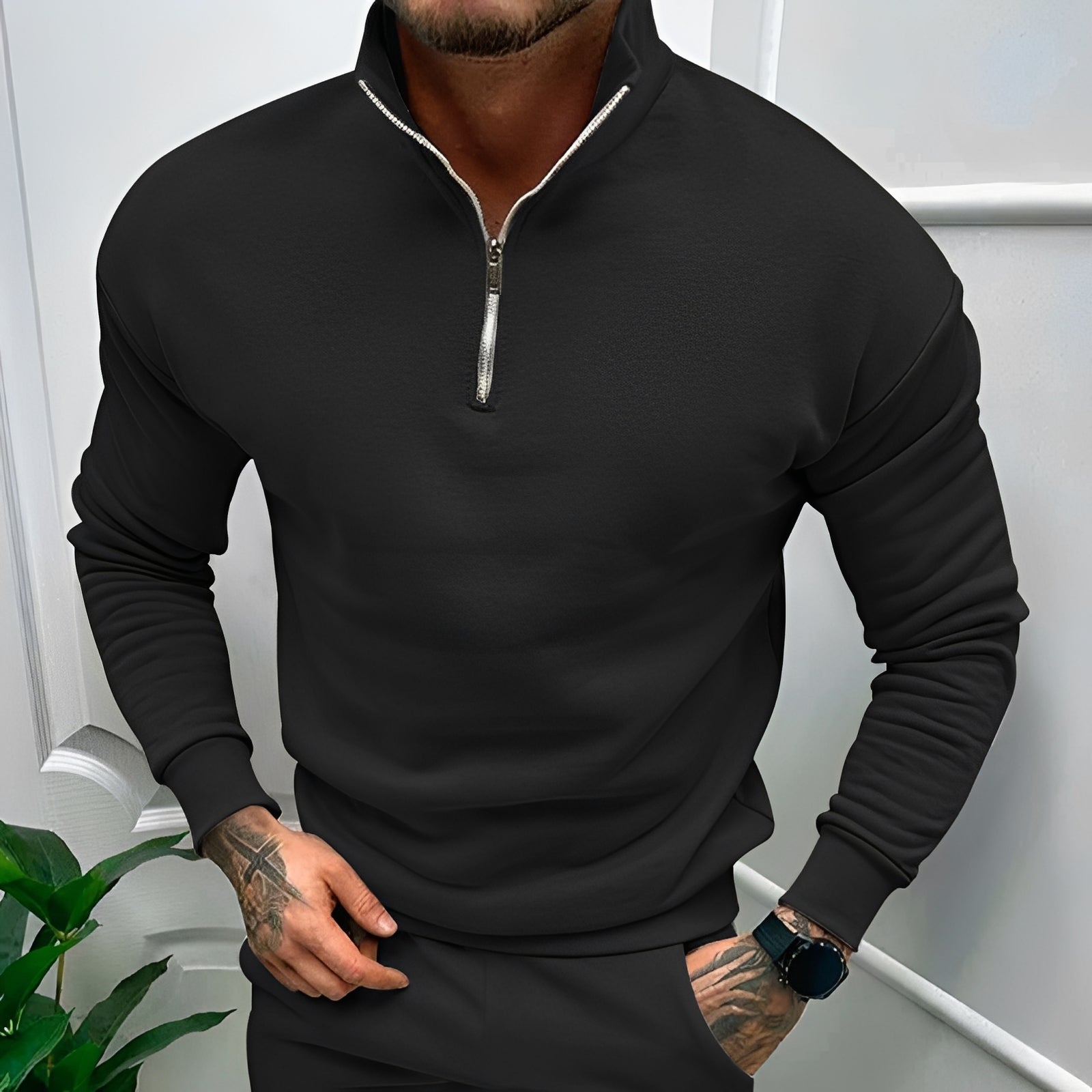 Robbie - Męski sweter z zamkiem na pół, luźny krój
