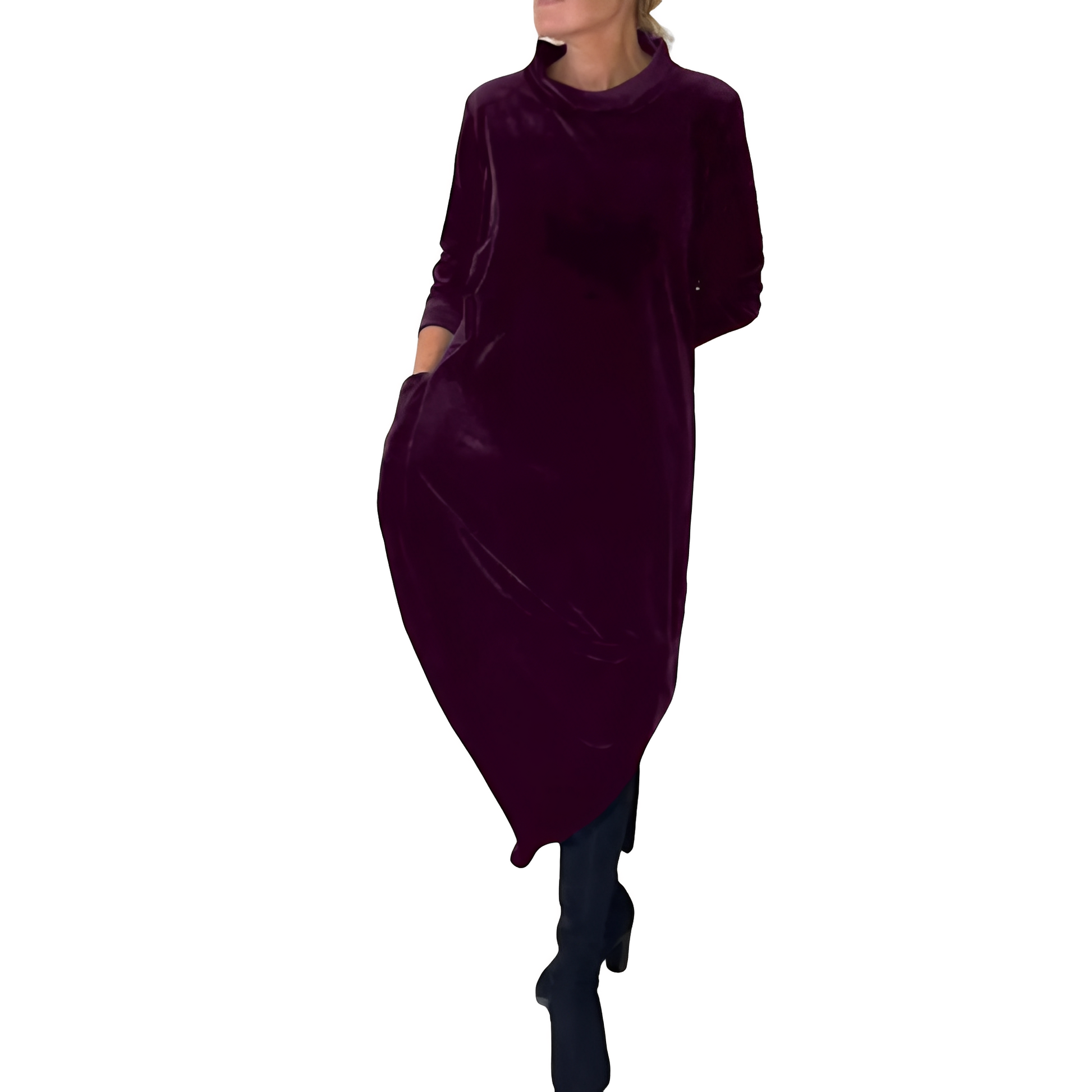 Sukienka Roxanne wyróżnia się luksusowym aksamitnym materiałem i eleganckim, długim krojem. Praktyczne kieszenie dodają wygody i funkcjonalności. Doskonała na wyjątkowe okazje, wieczorne spotkania lub szczególne chwile na co dzień. Delikatny fason akcentuje kobiecą linię i zapewnia przyjemność noszenia. Elegancka sukienka dla kobiet, które cenią styl i wygodę jednakowo.