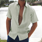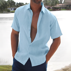 ZIMOWA WYPRZEDAŻOberon - Męska Koszula Lniana z Krótkim Rękawem