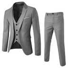 Sampson w trzech częściach łączy klasyczną elegancję z luźniejszym stylem. Zawiera marynarkę, kamizelkę i spodnie, co pozwala na różne zestawienia na każdą okazję. Wysokiej jakości materiał zapewnia wygodę noszenia i stylowy wygląd. Idealnie nadaje się do biura i na towarzyskie spotkania.