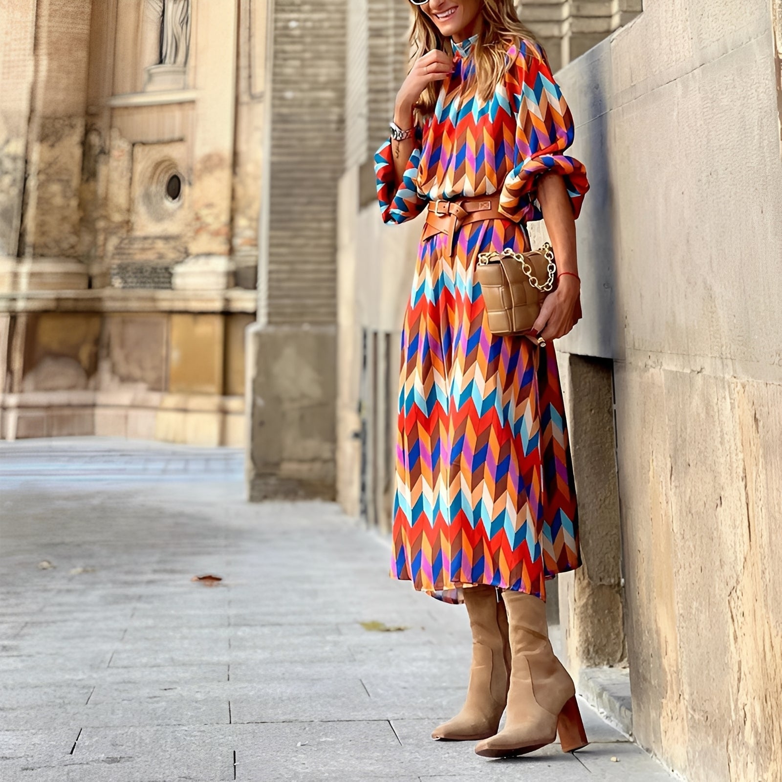 Sandra - Kolorowa sukienka midi dla kobiet
