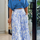 Dwuczęściowy Scarlett - Letni dwuczęściowy dla kobiet?składa się z eleganckiej koszuli z rękawami o średniej długości i spodni z szerokimi nogawkami na różne okazje.