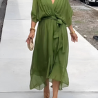 Odkryj idealne połączenie stylu i komfortu z Seraphina – kopertowa midi sukienka. Stworzona dla nowoczesnej kobiety, która chce elegancji bez rezygnacji z wygody ruchu, ta sukienka podkreśla kształty i zapewnia wygodę przez cały dzień.