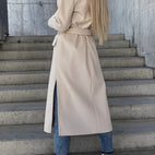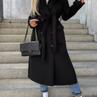 Suzanne - Klasyczny dwurzędowy płaszcz damski z paskiem